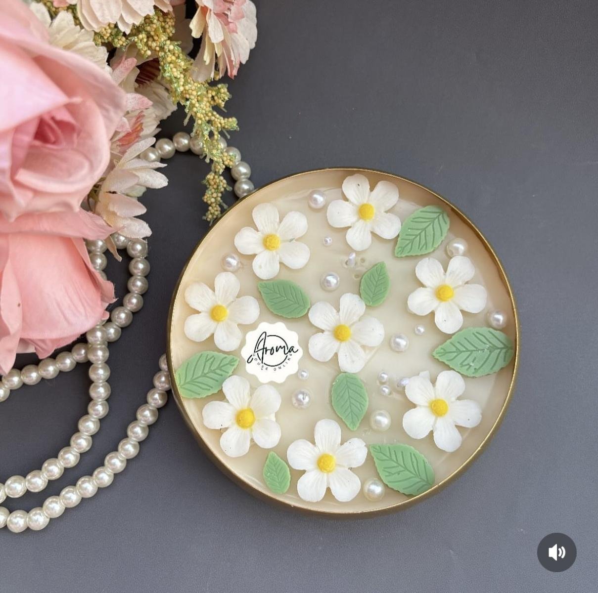 Cherry Blossom Urli candle made with soy wax , and perfect blend of fragrance…topped with beautiful flowers..