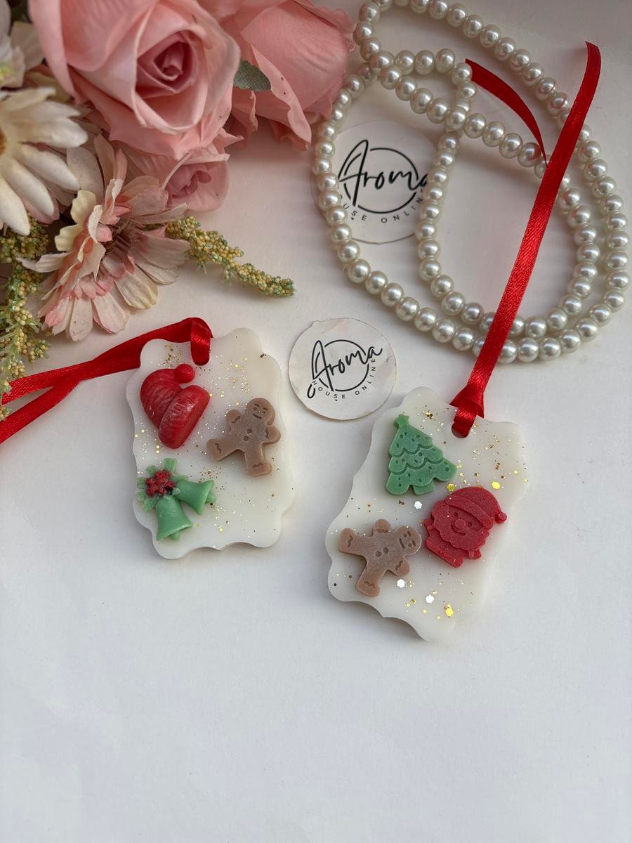 Christmas theme wax sachet made with soy wax and premium fragrance…topped with beautiful CHRISTMAS ORNAMENTS