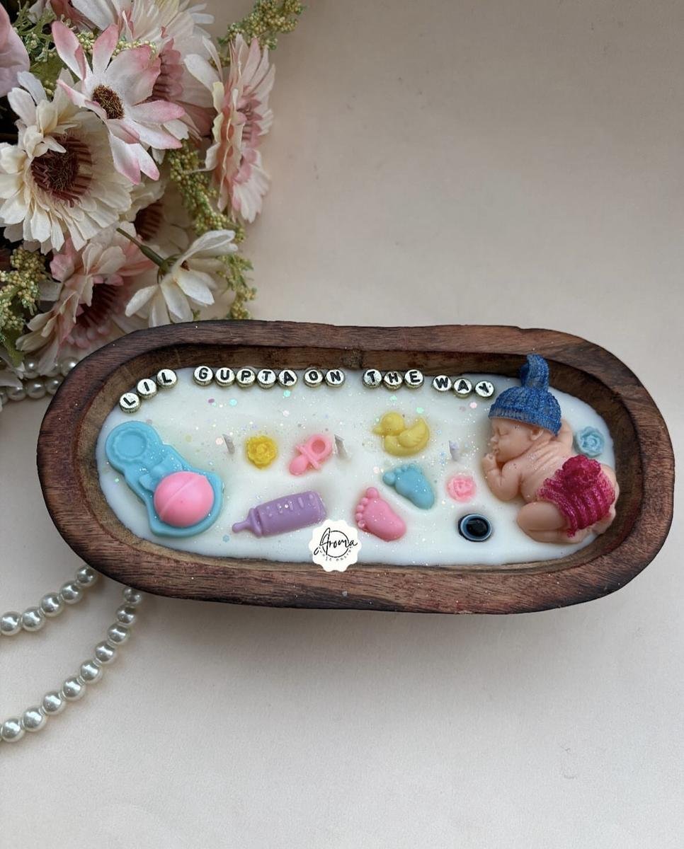 Custom Baby Shower theme Wooden boat candle made with soy wax and premium fragrance…you can customise any custom message..
