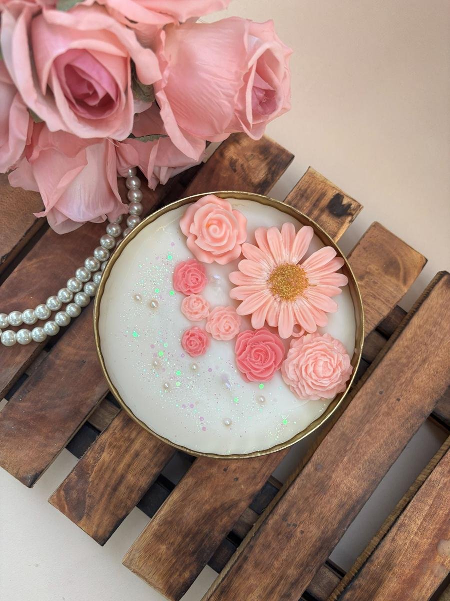 Daisy lotus Urli candle made with soy wax , and perfect blend of fragrance…topped with beautiful assorted flowers…