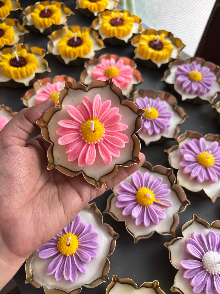 Daisy Urli candle made with soy wax , and perfect blend of fragrances ….topped with beautiful daisy…