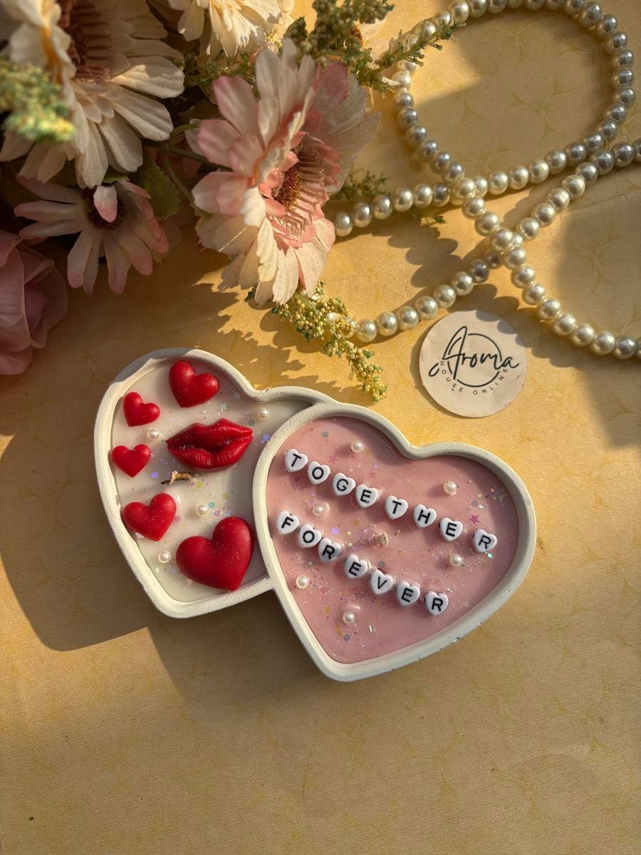 Heart in heart concrete Candle made with pure soy wax and premium fragrance….beautifully topped with hearts , lips & Message..