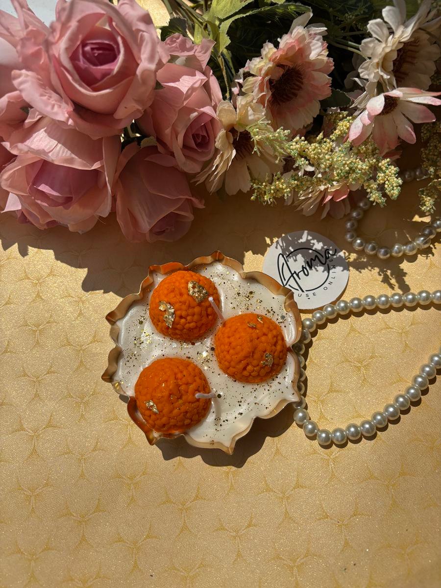 Laddu Urli candle made with soy wax , and perfect blend of fragrances ….topped with Laddu.