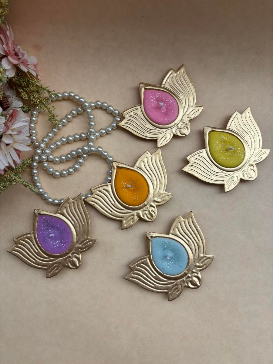 Lotus Shape diya candle made with soy wax , and perfect blend of fragrances ….
