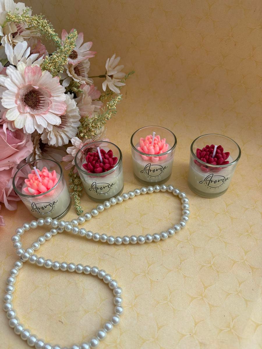 Short glass Candle made with pure soy wax and premium fragrance…topped with beautiful lotus flower