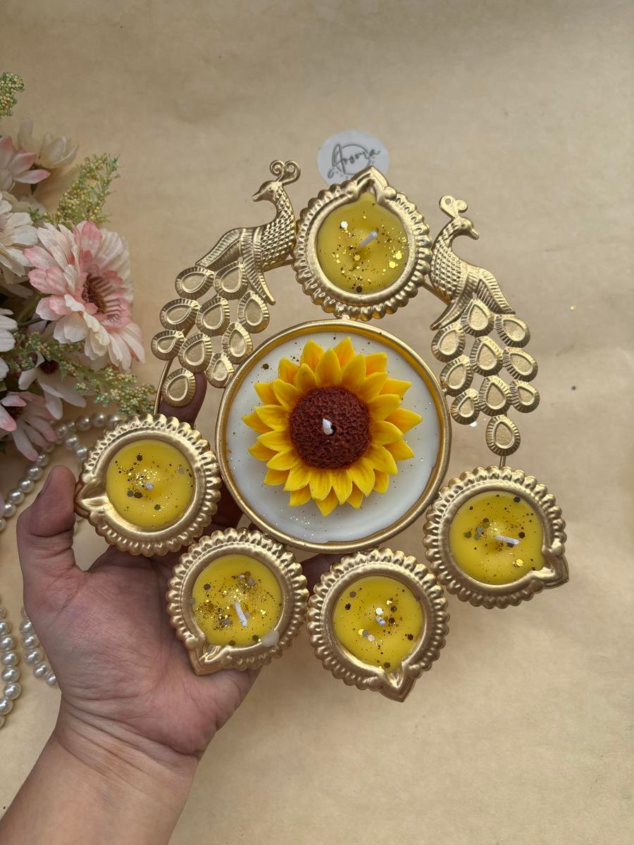 Sunflower Peacock Urli Candle