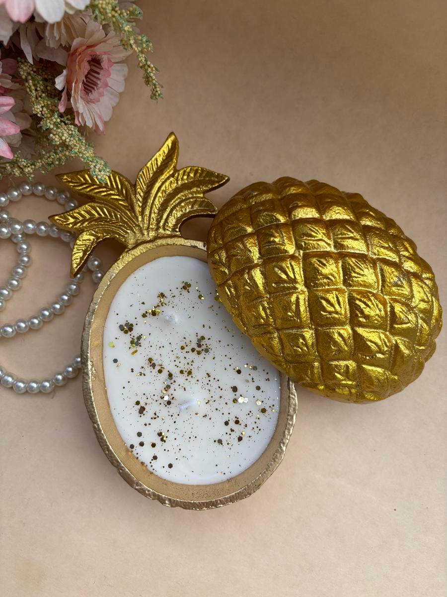 Pineapple Shape Urli candle made with soy wax , and perfect blend of fragrances ….