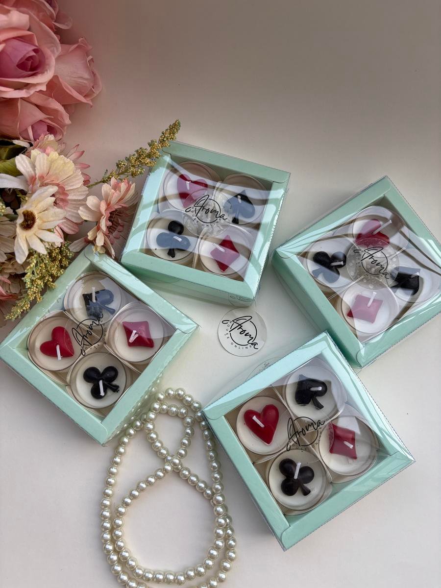 tealights candles made with soy wax and premium fragrance….topped with beautiful poker theme shapes..