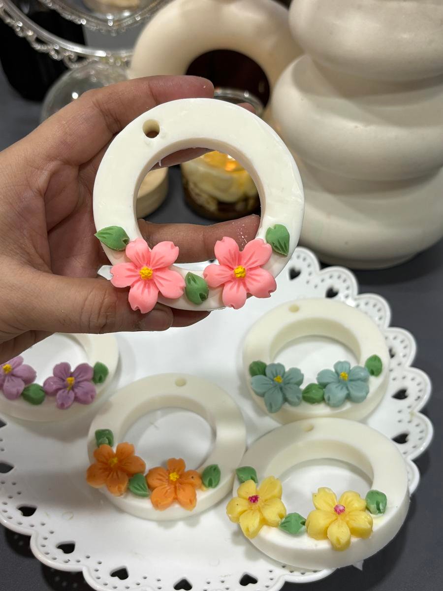 Cherry Blossom flower wax sachet made with soy wax and premium fragrance…topped with beautiful flowers & leaves