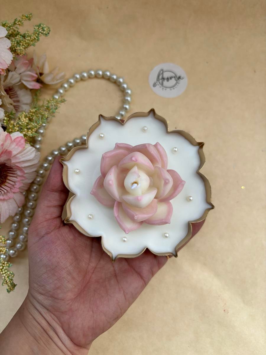 Soothing Lotus Urli candle made with soy wax , and perfect blend of fragrances ….topped with blooming lotus…