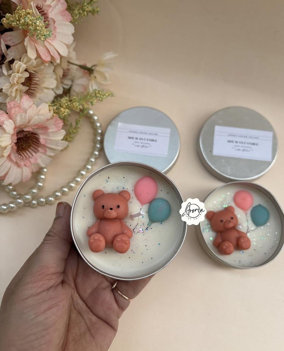 Teddy Balloon tin jar candle made with soy wax & premium fragrance…